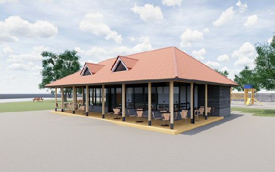 Following concerns raised by Historic England and heritage consultants, the design has been altered from the original proposal and now includes a roof that more closely reflects the historic tearooms building. A number of other design features have also been amended, including, reducing the size of the outside storage area, changes to the guttering and changes to the columns on the veranda.