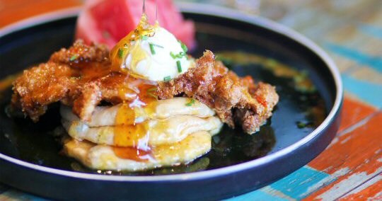 There are plenty of options for veggies and vegans too, including the Big Vegan Grill Down (Turtle Bay’s take on a full veggie breakfast), or the Vegan Yardbird, a fresh roti stacked with chicken-style vegan patty, smashed avocado, rich maple syrup, hot sauce & watermelon.