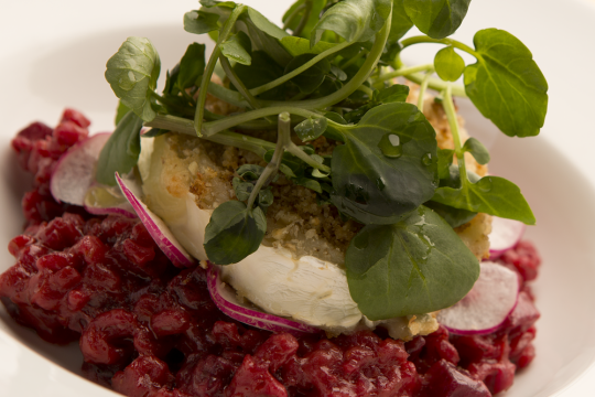 Plates on offer include a light and flavoursome heritage tomato salad, succulent corn fed chicken with chorizo and pea & asparagus velouté, fresh cod with pickled fennel and a gloriously colourful beetroot orzotto topped with goat’s cheese and walnut crumb.