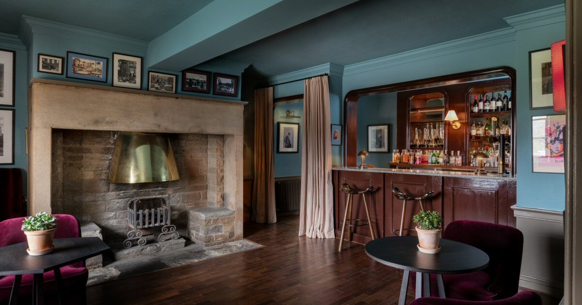 The lounge and bar is an intimate, cosy space for afternoon tea or cocktails, with traditional open fireplaces alongside a rich colour palette and push velvet fabrics and a 1950s style bar stocked with a large array of local gins.