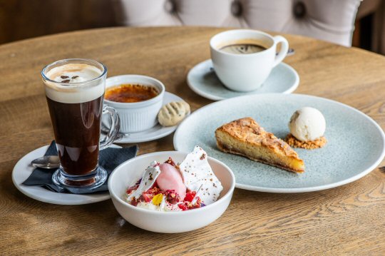 Vegetarian guests can enjoy the mushroom & celeriac pithivier with celeriac puree, roast potatoes, braised heritage carrots, and tender stem broccoli. For dessert, diners can indulge in classic dishes including Eton mess, crème brûlée with shortbread biscuit, or the Bakewell tart, served with a choice of Madagascan vanilla ice cream or custard.