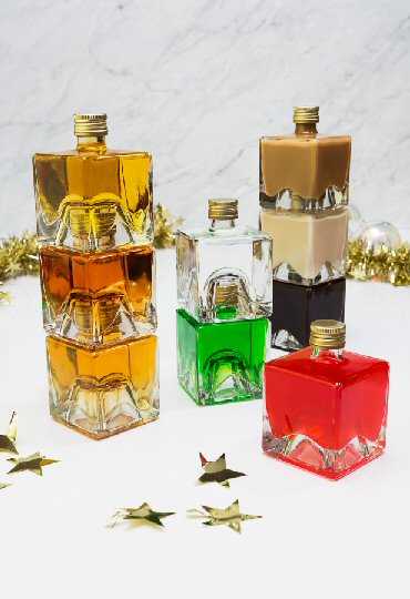 - From festive liqueurs and spirits to gourmet oils and vinegars, each can be decanted into a glass bottle with the customers choice of any shape, such as charming stars to gingerbread men, Christmas trees and skulls.
