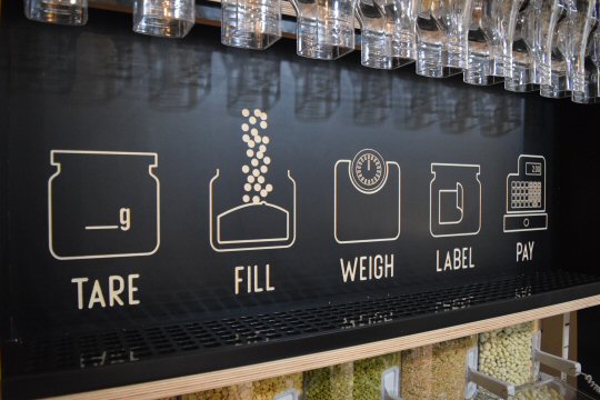 Offering refills is different to ‘bulk’ shopping, which does not deal with the issue of packaging waste. The weight of any container is automatically deducted from the overall weight of the goods bought and the system is self-service, easy to use, and complies with all legislation on weights, measures and labelling.