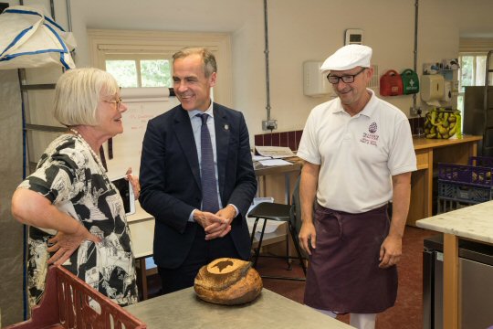 A loaf of bread decorated with a maple leaf by one of the students at The School of Artisan Food was presented to Canadian Mark Carney, Governor of the Bank of England on his visit to North Nottinghamshire.