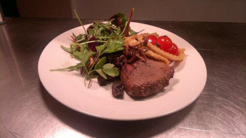 For my main course I had the swordfish steak, with homemade chunky chips, coleslaw and steak garnish, with an additional side salad. The man had waygu beef with the chips and steak garnish. Because I am such a considerate wifey I let hubster have my onion rings. My man is many things, but verbosity is not a quality you would associate with him; however such was the impact of the beef on him he uttered the line “ rarely has something been such a pleasure to eat “. Now, I blame the wine totally for this verbal outpouring you understand, but I was so shocked at such a profound statement issuing from his lips that I wrote it down. I will say at this point, that I had to try a morsel of Waygu for myself ( just for research purposes obviously), and can confirm that it was indeed blooming delicious.