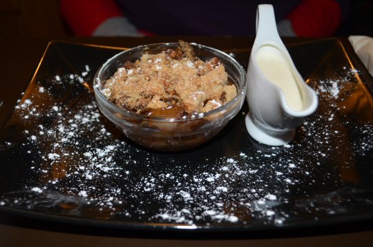 The Dessert Board had, unsurprisingly, caught my eye as we first walked into the pub so I had a fair idea as to what my final course would be! When my Plum and Port Crumble was placed before me I could hardly wait to tuck in it looked so good. The Plum slices had been cooked in port, but still retained their natural firmness rather than disintegrating into a sloppy mush and then these were topped with chunks of homemade Crumble which is a little different to the usual way of presentation. The Pouring Cream came in a dinky jug on the side allowing you to add as much or as little as you wish. His Nibs had a Mixed Berry Eton Mess which was served in a tall Glass on a Slate dusted with Icing Sugar. There were Berries in abundance with lovely chunks of Meringue enveloped in a light fluffy cream that had a hint of fruit taste to it. I thought I was going to have to stop him licking the glass clean, he enjoyed it that much.