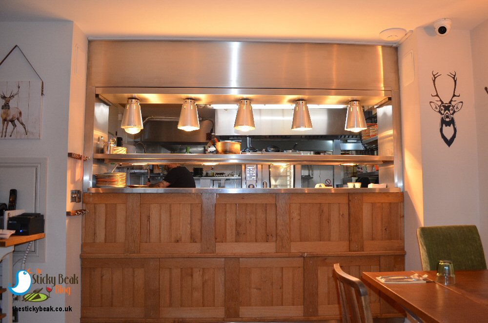 The Stag restaurant has lovely sanded wood floors and really chunky wood tables with contrasting white-painted bases. Neutral, cream toned walls had been adorned with framed prints of Stags in various poses, giving a fantastic rustic feel to this space. Background music was played at a sociable level; enough to be heard, but not too loud as to interfere with conversation. I loved the open kitchen though, and Chef Marco was conducting his orchestra of kitchen staff with the skill of a culinary maestro. You could see the hustle and bustle of the kitchen and hear all the communication going on;”yes, Chef” was a regular refrain.