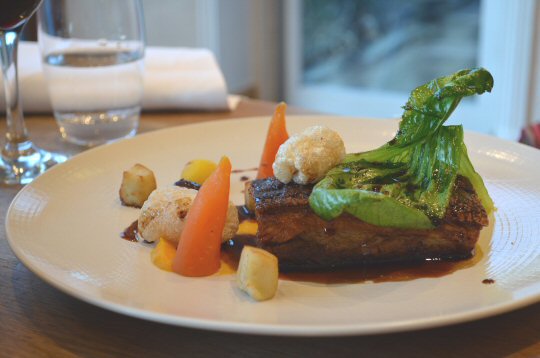 This time the presentation was world-class fine dining standard, extremely artfully done with little mounds of jewel colours on my plate and a beautiful quenelle of mash crowning a tantalising confection in his nibs bowl. Serious amounts of love and pride went into these dishes and we savoured every beakful with the reverence they deserved. My belly pork was coming apart in ribbons and was super moist with the most delicate creamy taste to it, and the scratchings were just spot-on too, you know how much I like a good decibel crunch! The Venison the Man had was equally tender and falling apart, it just melted in the mouth. A smooth as glass mash and rich sauce topped things off to produce “perfection on a plate“ to quote Him. The Gruyere fries were lovely and crispy and had a lovely tang to them thanks to the cheese, and they did go very well with our dishes.