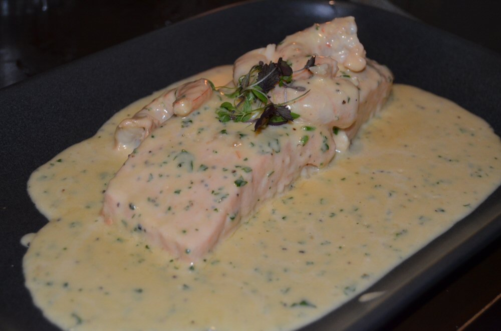 Daddy Bird had asked for his Fillet medallions to be cooked medium/well and His Nibs requested his be done medium; when they cut into them they had both got exactly what they’d wished for. The chaps were very happy indeed with the quality and quantity of the steak on their respective plates, and Daddy was thrilled with the sauce saying that it was a brilliant balance of cream and Brandy: not over-poweringly rich that you couldn’t eat much of it, but certainly luscious enough to make you realise you were savouring something special. His Nibs’ Black Pepper sauce was a proper punchy little minx with a nice bit of heat that partnered the deep taste of the fillet steak superbly.