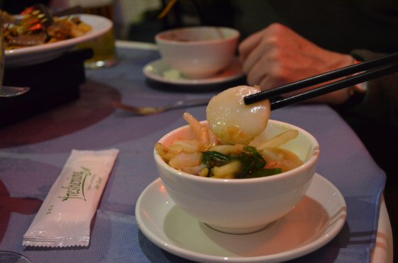 I should point out that the Oriental Pearl is one of those rare establishments that have Chopsticks on the table as standard, but gladly provide knives and forks on request if you don’t like chopsticks or feel particularly confident with them. Indeed having knives and forks as back-up means you can try chopsticks out for the first time, or just renew your skills with them for a while. We used the Chopsticks with varying degrees of success, which provided us with some in family entertainment and added to the relaxed happy occasion that it was intended to be.