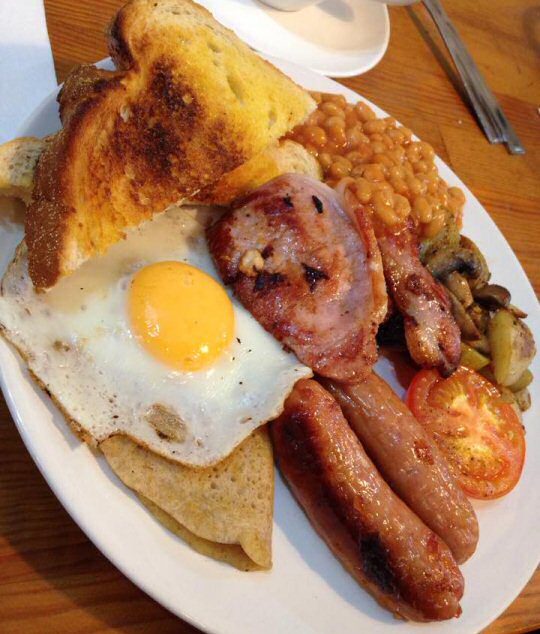 There were already several tables taken by like minded folk who wanted to have a marvellous breakfast in great surroundings, and we soon decided on what we wanted : The full Derbyshire Breakfast for His Nibs, The Breakfast Ciabatta for my Chick and I had the Eggs Royale (softly poached eggs with Salmon and Hollandaise sauce on a toasted Muffin). We also had a couple of large Lattes and a Hot Chocolate with Cream and Marshmallows.
