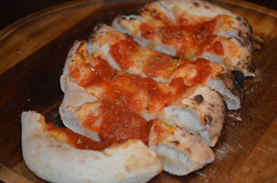Our server came and took our drinks order and told us of the specials on offer that day and then gave us a few minutes to decide what we would like. The Boy Wonder and I shared a Garlic Bread with Tomato and fresh Rosemary to start and my Chickadee and her friend shared a plain Garlic Bread. Both breads were nice and crispy with a lovely flavour to them and we really enjoyed them.