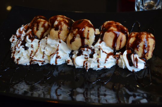 The Man Birds Carbonara was deliciously creamy and the sauce coated the ribbons of Tagliatelle beautifully, and he said that the Ham was a good quality too. My own risotto was equally yummy with its bountiful amount of Baby Octopus, Squid, Prawns, King Prawns and in-shell Mussels. All the seafood was cooked very well (none of it was at all chewy), and the rice was nice and creamy with just the right amount of seasoning. Needless to say there was a lull in conversation at our table as we tucked in to our food with gusto. We also ordered a garlic bread to accompany our main courses and this had a very nice thin, crisp base to it and a great flavour. As with all good Italian food our little tummies were full to the brim, so we asked Chloe to give us 10 minutes grace before bringing the dessert menu over for us to look at.