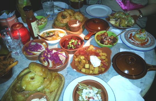 We kicked off our little party with a round of Mojitos and Margaritas and toasted the birthday girl’s health. For food we settled on the Tapas selection; and each couple chose 6 different dishes. At £28 for the 6 dishes it represents really good value for money, as each dish is a considerable size that you don’t always appreciate when it is in the serving dish. Midweek the offer is 3 tapas dishes for £13.