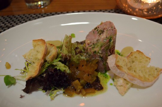 For our starters we had the Ham Hock Terrine with Onion puree, Apple chutney and toasted bread and the Lobster and Crayfish ravioli with shellfish bisque, fresh Chervil, braised Fennel and Lemon dressing. The terrine was, according to His Nibs, wonderfully meaty, nicely seasoned and the chunky chutney really accentuated its flavours beautifully. I must say, the little piece of terrine I tried was fantastic; very flavoursome.