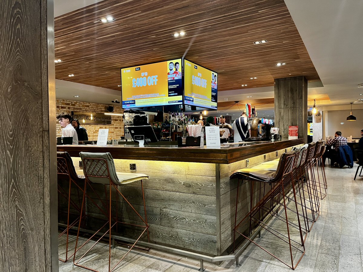 Brilliantly located just off the motorway, there’s plenty of parking onsite (you can opt to pay for this separately or chunk it on to your bill, although it is free from 5pm Friday-3pm Sunday), and we managed to grab a spot close to the entrance.