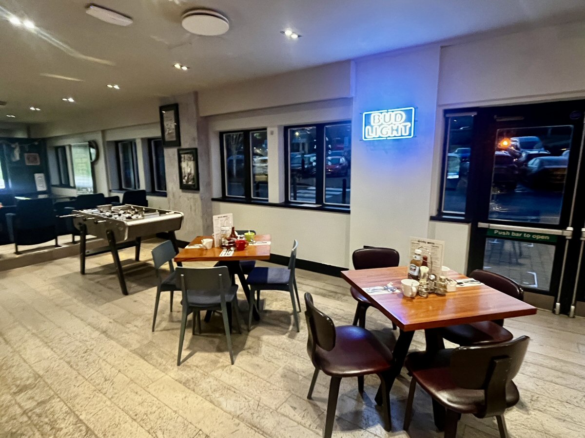 From the amount of meetings and catch-ups, I’d gathered that the Pub and Grill is a popular, informal space during the day; whilst I’d been beavering away at my keyboard, there’d been plenty of activity. No surprise, then, that several of the Village Hotel team saw me and His Maj and came over to say hi: Kelly, Paula, and Daniel all chatted with us, which was lovely; putting a face to a name is always nice. I felt a bit like the poor relation: The Man was donning his smart work gear, while I’d gone fully paid-up, card carrying member of the shlompy tramp club and was showcasing sliders, harem pants and tee-shirt – ground swallow me up! Thankfully, they pretended not to/didn’t notice; your tact was very much appreciated, I just want to say; and thank you for the recommendations of restaurants in the locale, we’re looking forward to checking them out this week.