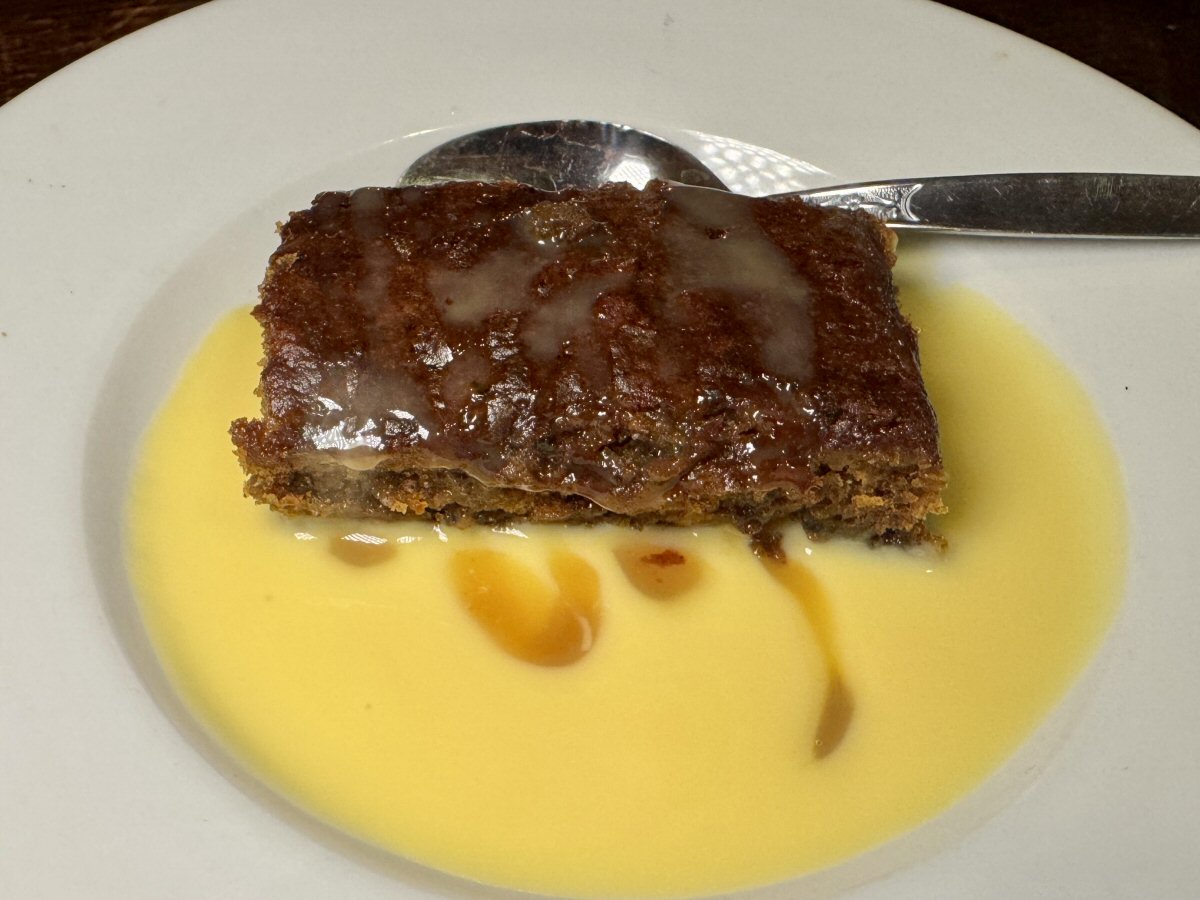 We chowed steadily through our pyramid-esque plates, and a short while later were tucking into our puds: Sticky Toffee for Him, Jam Sponge for me – both with lots of creamy custard. It might not be fancy-pants food, but it’s tasty, honest grub that hits all the right spots on your palate…and, of course, you’re supporting a fab local endeavour. Whenever we visit, we have to pick up some Grumpy Farmer Honey: His Nibs and The Beau love it! If it’s available, I try to grab some Goats Cheese, too.