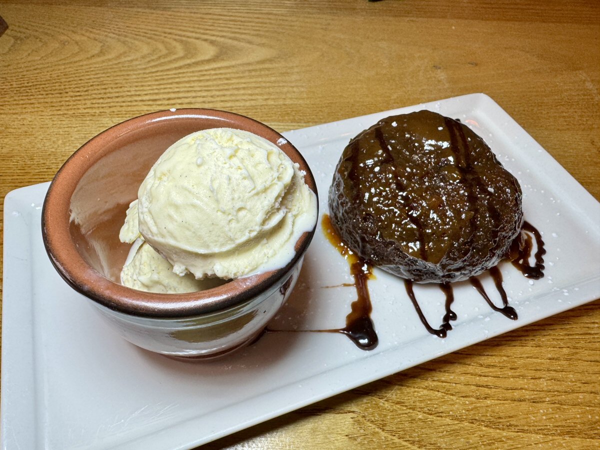 Across the table, Mummy was wasting no time slapping the jug of cream all over her Sticky Toffee Pud – us Beaky Birds don’t waste energy on subtlety or restraint! Both Mummy and The Man said that the taste of the Toffee Pudding was excellent: rich and deep and very satisfying. The texture was great, too; not overly dense, but substantial. As with my dessert, the portion was generous, so everyone was happy. The biggest surprise of the day came when Gareth said that the Ice Cream was non-dairy – His Nibs didn’t notice, so the quality must’ve been good.