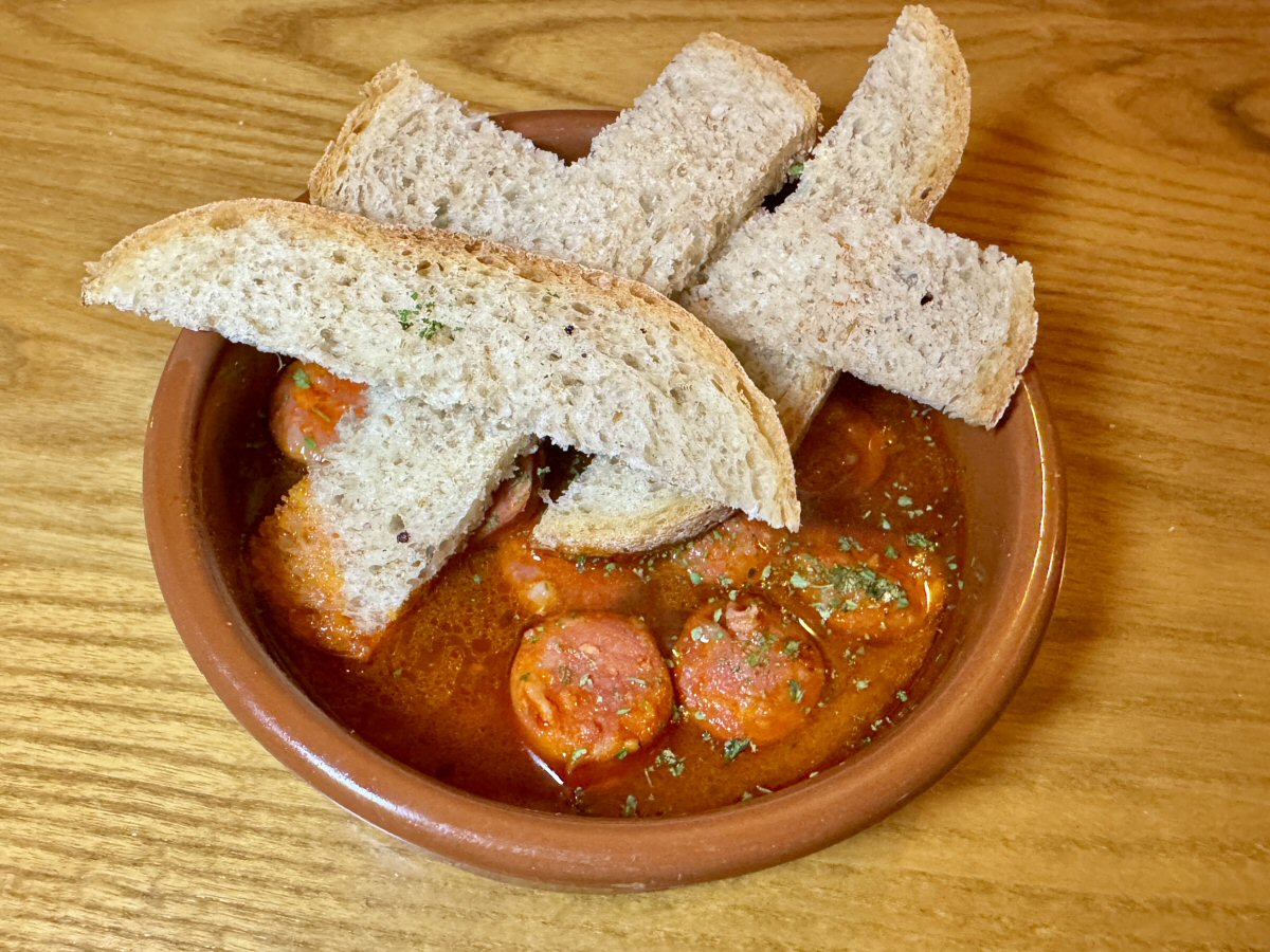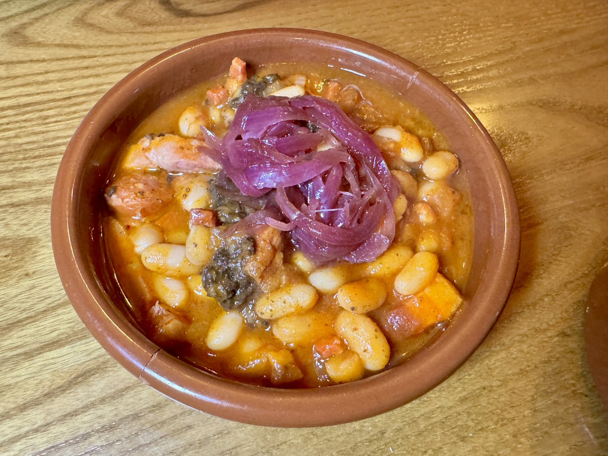 Up last on this trio of Tapas was a hearty, white-bean based stew from the Asturias region of Northern Spain and this was a total stand-out dish for both of us. Fibre-rich, thanks to the beans, there was a hefty dose of protein in there as well from the Chorizo, Black Pudding and Pork Belly. Packed with flavour, this stew was wholesome and comforting, and possibly our new Tapas favourite. Yet again, I proved that I’m a classy bird, asking Mark for some more bread to mop up the excess stew sauce…but in mitigation, it really was too good to leave any in the bowl.