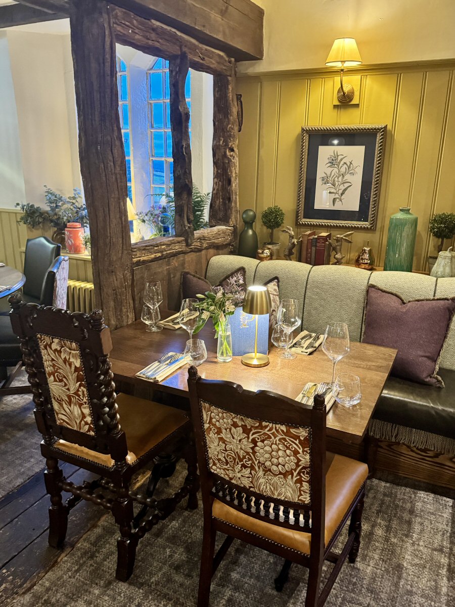 Whilst we waited for our starters, I sat back and soaked up the elevated cosy country vibe of The Peacock. Low ceiling beams, plentiful greenery in the deep alcove windows and the muted natural colour palate of the walls and soft furnishings all soothe the senses, aided by the warm glow of the lighting throughout the space. Each table had its own small, matte gold lamp for even more intimate cosiness. The Peacock is one of those places that you could easily lose track of time in, which is certainly no bad thing in my mind - its ‘oooh’ factor just cossets you.
