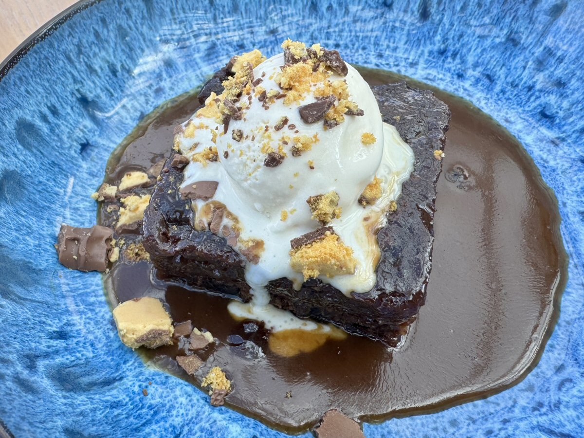 Mummy was savouring her mid-dense, rich pudding, revelling in the moistness of its Caramel sauce-soaked body. More sauce had been drizzled over the large square of pudding, and a luxurious touch came via the Vanilla Bean Ice cream that had softened with the heat of the Sticky Toffee Temptress. Was Mummy Bird happy? Not half!