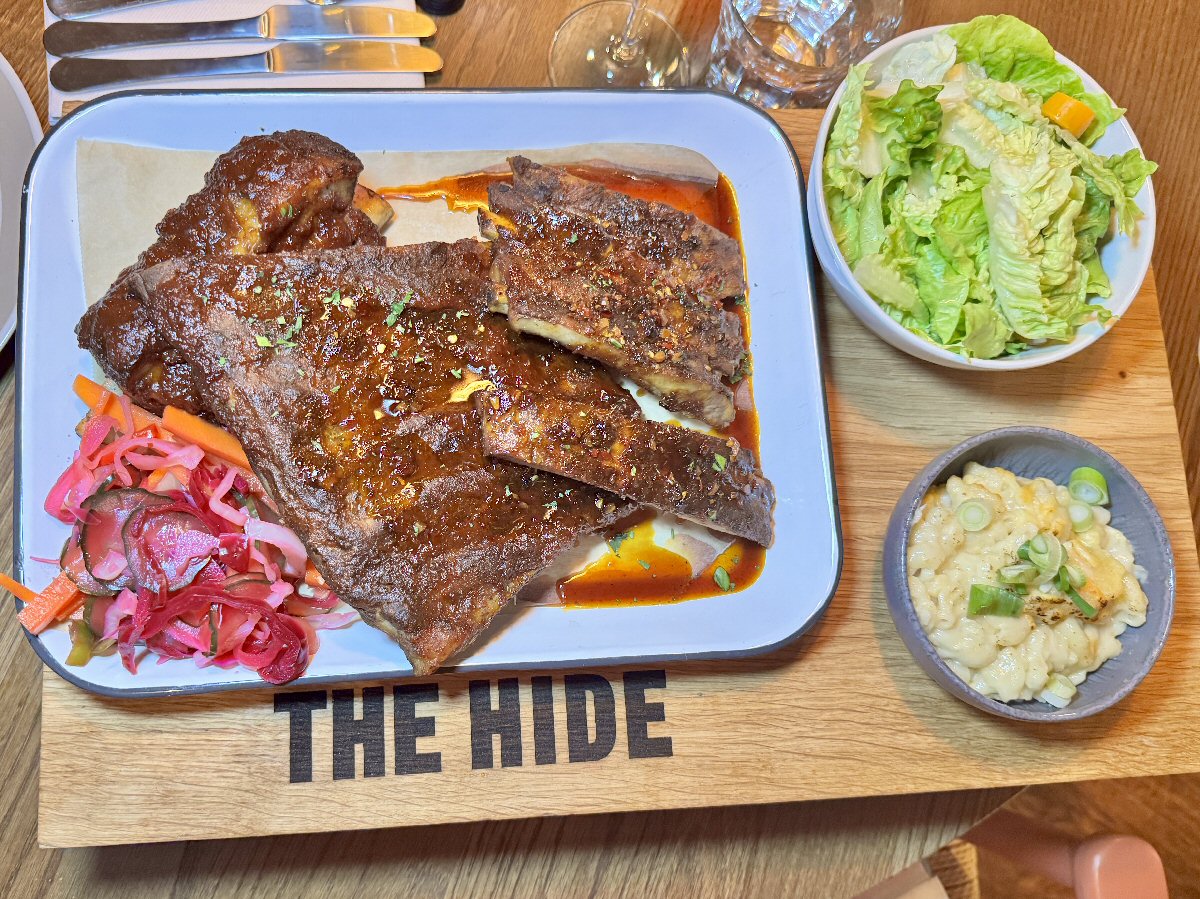 All the BBQ Rib Plates and Smoked-and-BBQ Finished dishes come with skin-on Fries, house Pickles, and a choice of side (which you can upgrade to a premium side for £1 extra). Now, admittedly, it isn’t often that my wisdom shows itself but, on this occasion, I had had the foresight to ask if the Fries could be swapped out for a bit of Salad – this was a totally genius move, it turned out. Chopped Romaine, halved Cherry Tomatoes, diced Cucumber, and thinly sliced Red Onion were all cool and crisp, providing something a bit lighter on the palate. The Carbs came in the guise of a rather fine Mac-n-Cheese (the premium side I had opted for) which was tasty comfort food at its zenith.