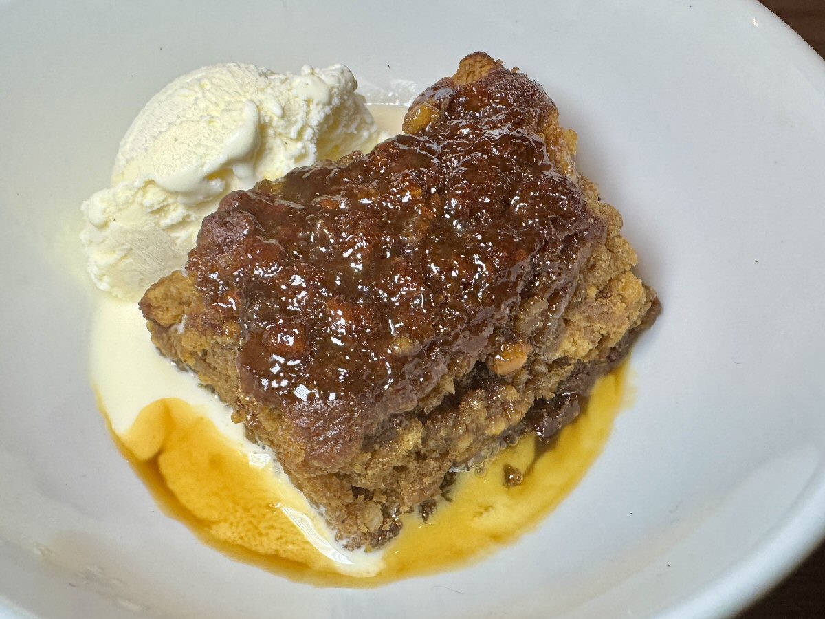 I chose Ginger Parkin with Toffee Sauce and Vanilla Ice Cream (£6.99) to conclude my meal; His Nibs went with Vanilla New York Cheesecake with Fresh Mango and Passionfruit Sorbet (£6.50). Thankfully, the portions of the desserts are a little more restrained…though not by much in all honesty.