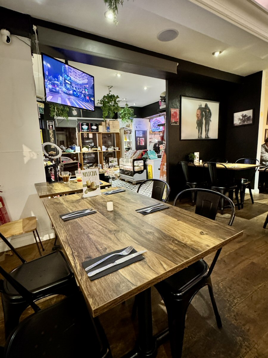 For dessert, I ordered the Hong Kong French Toast V.1 (£6); His Nibs decided to try its cousin, The Chocolate Lava French Toast. If you’re a dentist, you might want to skip this final bit of the review – it’ll trigger you!! For the rest of you, this is sweeter-than-sweet comfort food: fried, egg-dipped bread filled with smooth Peanut Butter and then absolutely smothered in Golden Syrup and a hefty knob of Butter that melts all over to provide an alluring gloss. This makes your teeth tingle with the sweetness, but honestly, it’s worth it. The Chocolate Lava version is slightly more forgiving to the teeth…but probs not to the waistline! Gorgeous eggy bread is filled with a Malty/Chocolate spread and then topped with indulgent Chocolate Powder to form a lake that oozes over the sweet treasure when you cut into it. As a fully-paid up member of the sweet club, His Nibs says that fellow chocoholics will love this.