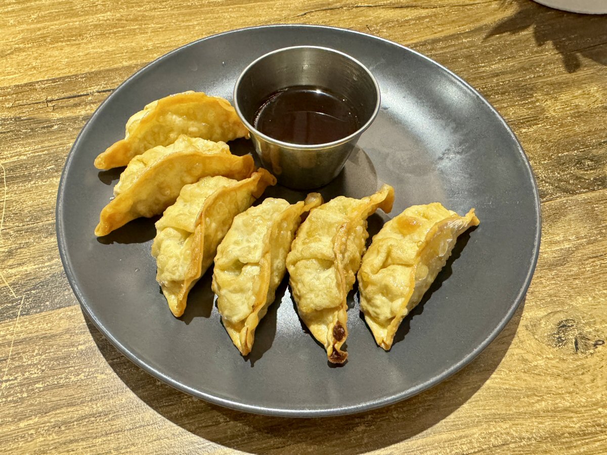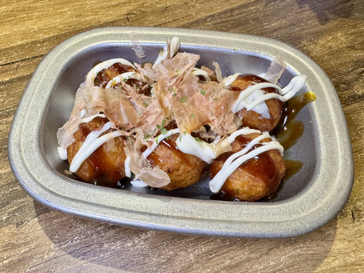 We weren’t waiting long, and eagerly tucked in to the pair of laden plates. Served in an enamel dish, the balls of shredded Octopus were lovely and crispy on the outside, with soft, fragrant inners that had a gorgeously creamy texture. A punchy Garlic Mayo and sticky sauce had been drizzled over the tops of the Takoyaki, with a sprinkling of Bonito flakes (dried, smoked, fermented Skipjack Tuna) for some serious umami vibes.