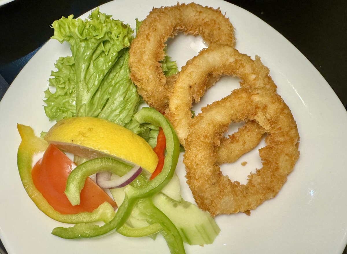 Taramosalata is one of those dips that divides opinion; personally, I love the curiously briny flavour which you don’t expect from a pink-blancmange toned dish – I do get why some folks can’t get on with the salted, cured Fish Roe base, though. Mummy and I snaffled the lions’ share of this dip, whilst His Nibs was giving the Tzatziki and Houmus some serious attention; we also got to have the Olives between us, as The Man doesn’t like them. The battered Calamari rings were gorgeously crisp on their outers, and Chef had cooked the seafood perfectly so that it had remained soft, rather than becoming tough and chewy.
