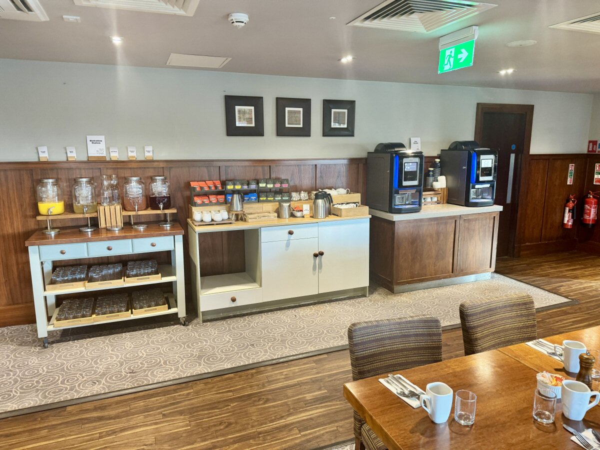 We had all just finished the cold breakfast when our eggs arrived, so then it was over to the hot counter to load up plates with scrummy Bacon, Sausage, Hash Browns, Baked Beans, Grilled Fresh Tomatoes, Sauteed Mushrooms, and Fried Bread. You won’t go hungry at a Hilton Hotel, that is for sure! As well as the hot counter, there was a cereal and seed station, and a selection of Pastries, Breads and Cakes to enjoy. I can confirm that the mini Croissants and Pain-au-Chocolates are moreish. On the second morning, I succumbed to the temptation of a mini Custard Danish Pastry, too; thankfully my flock believe in doing things together, so Mummy and The Man Bird also indulged: Raspberry Danish and Cinnamon Swirls incoming 😊!