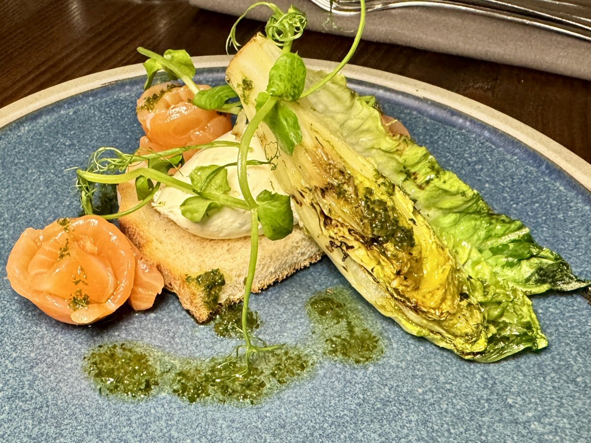 To start, I had the Salmon Gravlax with Charred Baby Gem, Horseradish Cream Cheese Mousse, and warm Bread; His Maj had the Duck Rillette, and Beetroot and Fennel Jelly that was served with Toasted Sourdough and Pickled Vegetables. Both dishes were presented stunningly, my own Salmon fashioned into exquisite ‘Roses’, and both the fish and The Mans’ Duck were juicy and bursting with flavour. The scene-stealer, though, was my Horseradish Cream Cheese Mousse – if I could only ever eat one thing for the rest of my days, this would be it!! Executive Chef Gagea, you’re a ruddy genius.
