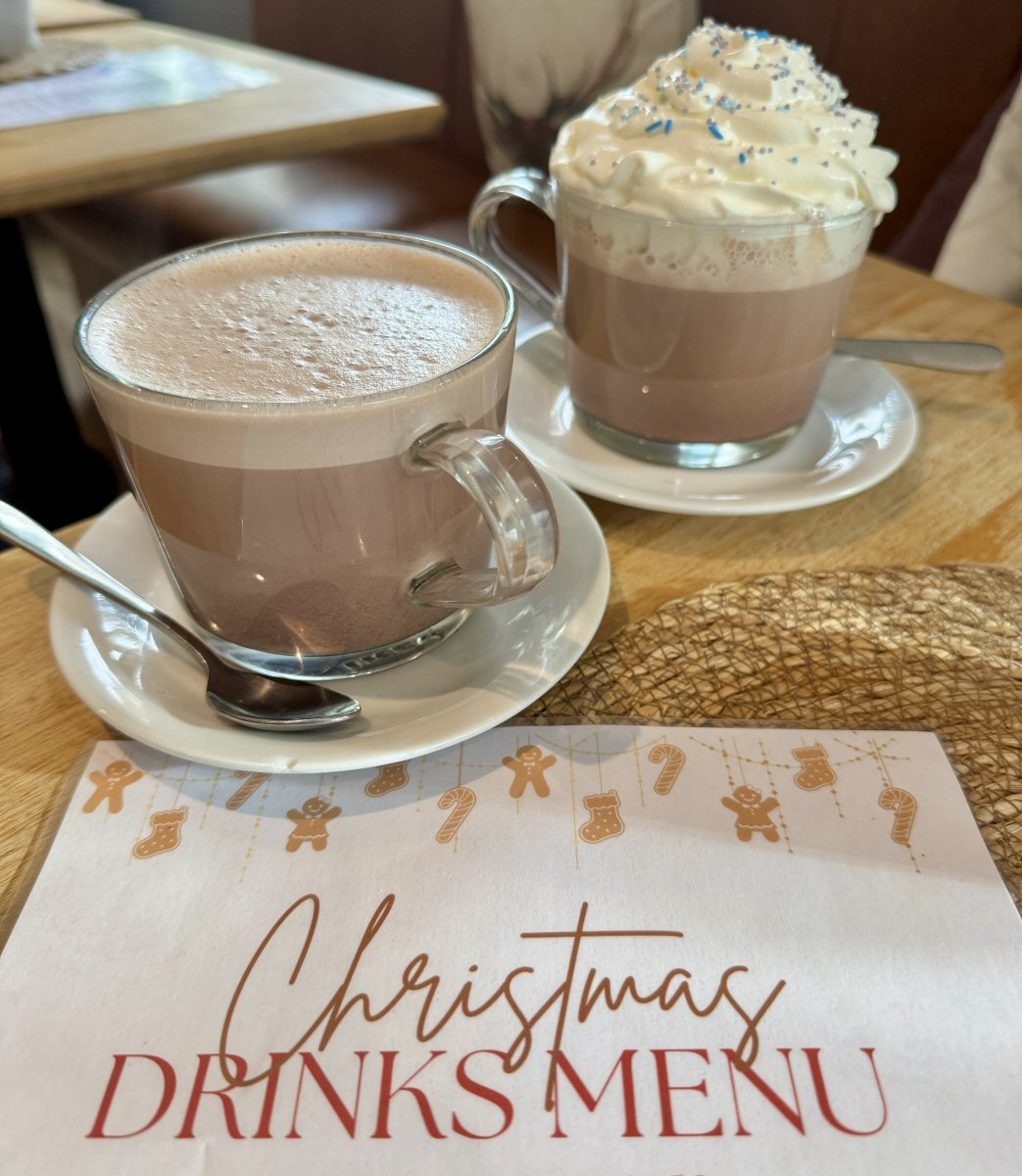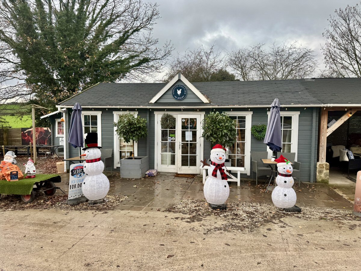 There’s two ‘sides’ to the venue: the farm shop and outside seating area that has a log-burner and sheepskins on the chairs, and the barn that houses the tearoom. Typically, we’d arrived smack-dab between breakfast and lunch service, so we sat and supped some fantastic Hot Chocolates that had Bailey’s Chocolate Orange liqueur in (mine had a massive swirl of whipped cream on, too!) whilst we waited for lunch to ‘open’.