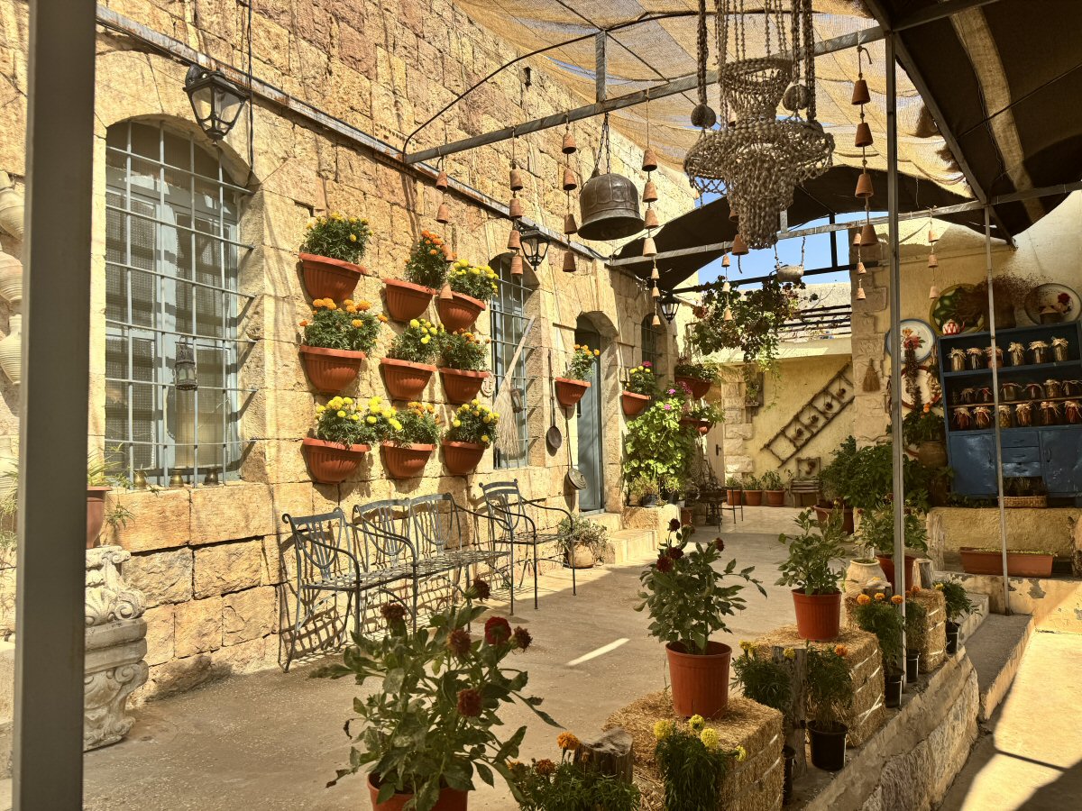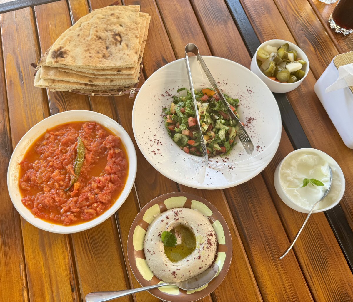 After that, it was off to savour an alfresco lunch at a women’s-run co-operative, Beit Khairat Souf, where we also purchased some Pomegranate Molasses and a Thyme, Garlic and Olive Oil marinade. The flat, Kofte-style Lamb was beautifully spiced and bathed in a mouth-watering Yoghurt sauce that contained softened, sliced Potatoes within it. This dish truly was bursting with taste and spices. Fresh salads, flatbreads and dips also found their way to us and we were proper little Weebles as we made our way back to Raed and his air-conditioned Rav4!
