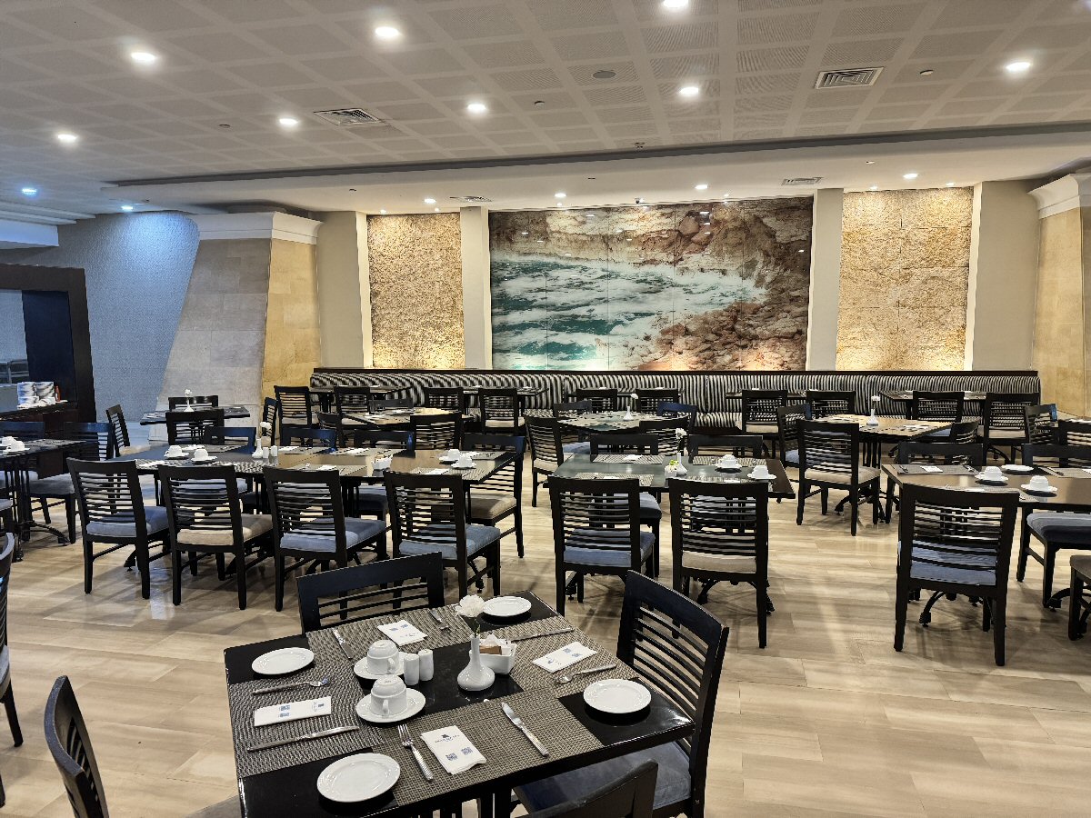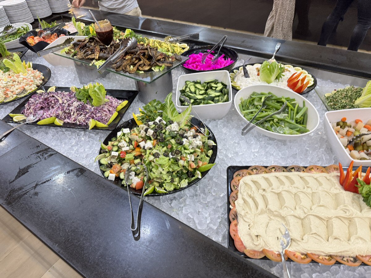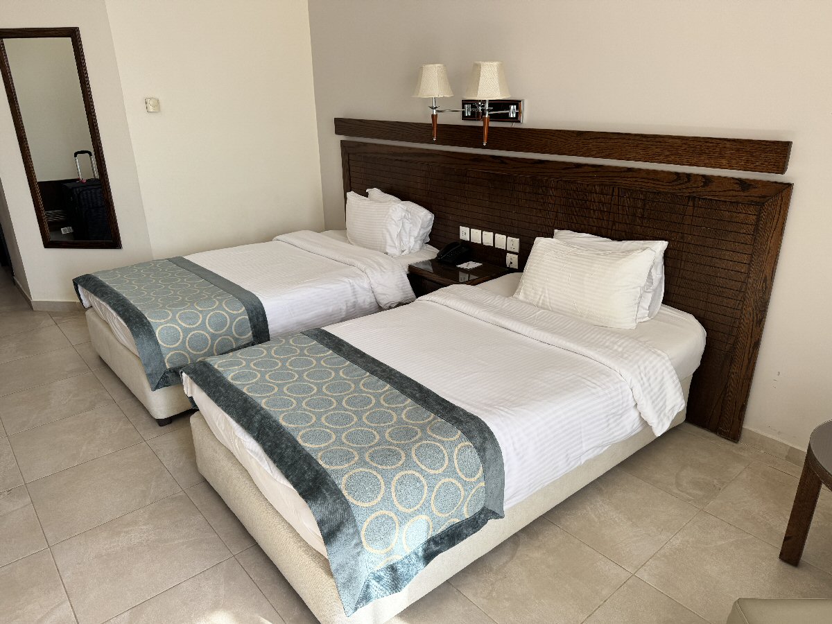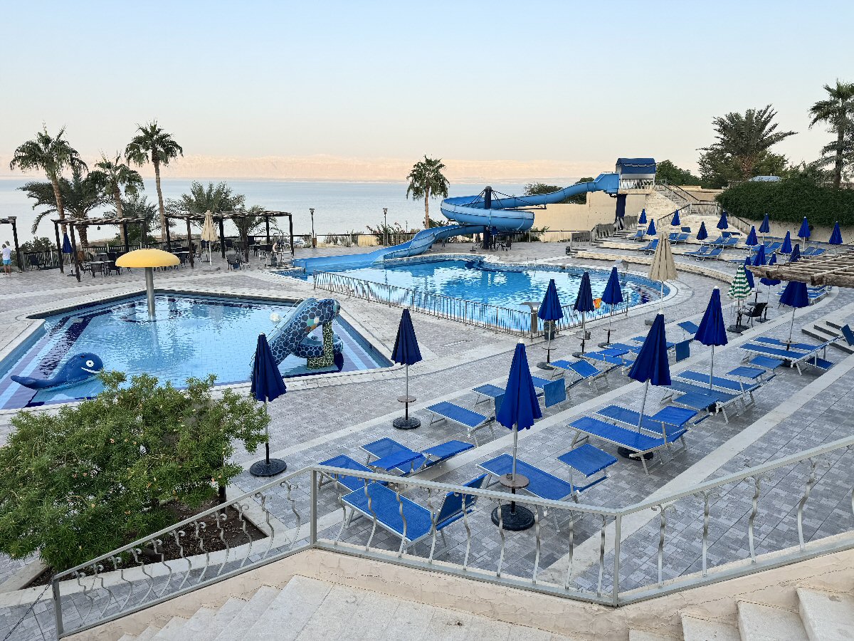 Along the shores of The Dead Sea there are now 10 resorts; the Dead Sea Spa Hotel was the original one, and this was our choice of accommodation. Heart-breakingly, the path down to the water is punctuated by signs that mark the level of the vanishing sea; what was once lapping at the steps of the hotel is now a good 5–10-minute walk away. A grim reality check if ever there was one. The rooms of the hotel are a very generous size and equipped with USB sockets, in-built hair-dryer and toiletries, albeit generic ones (other than the small Dead Sea Mud soap-bar that was a ‘welcome gift’), which left me a bit underwhelmed if I’m being honest.