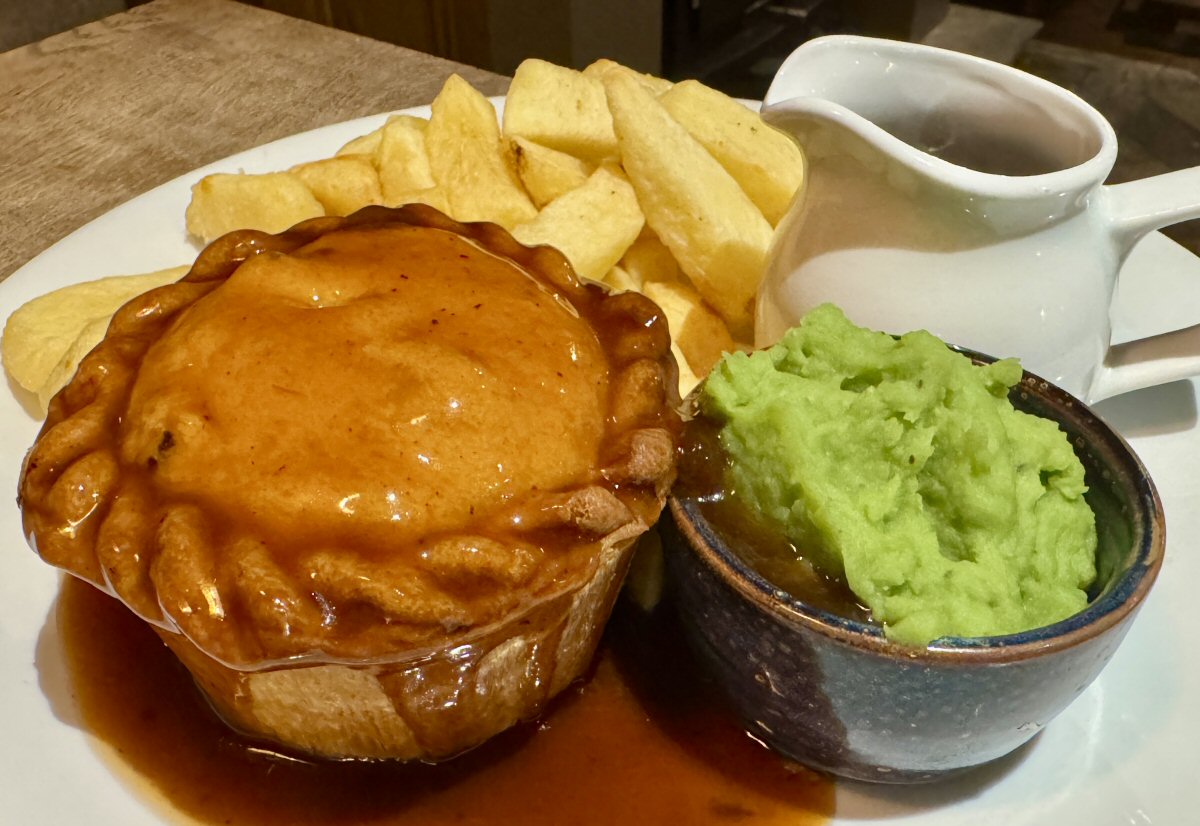 In the colder months, I am rather fond of a Meat Pie and, taking my first mouthful of this morsel, was more than a smidge pleased that I’d gone with it. Huge chunks of flavoursome Beef and an impossibly thick, ale-pimped gravy that would, to quote my beloved Nana “put hairs on your chest”, were tremendous as was, but combined with the pastry that housed them, they became something extraordinary! When a pie is done as well as this, all that’s needed is some type of spud and peas; here at The Anchor Inn, they serve their morsel with chunky chips and garden peas as standard, but I was my usual cheeky self and asked if I could have Mushy peas instead. Call me common all you like, I think a home-made pie should have soft mushies with it; preferably ones that are doused in vinegar - do not come for me, that’s how I like ‘em!