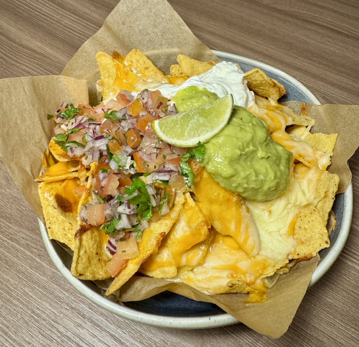 For starters I went for the Cauliflower ‘Wings’ with Bang Bang Sauce, a Sesame Seaweed and Lime salad, and Red Chilli; His Nibs opted for the Loaded Nachos with Cheese Sauce, Guacamole, Soured Cream, Pico de Gallo, and Lime. Both dishes were nicely presented and The Man’s Nachos could easily be a sharer portion!