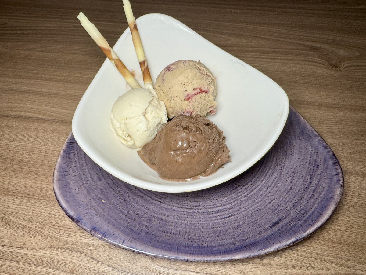 Chocolate and Cherry are a classic combo, and the sweet Cherry (paired with Almondy Ameretti) pinged brightly against the decadent richness of the Dark Chocolate Truffle variety here. Bringing an elegant smoothness to the Ice Cream party was a silkily rounded Clotted Cream offering that had the unmistakeable warmth of Vanilla at its periphery. Who says Ice Cream is boring? Not me, after sampling this combination! Nom nom.