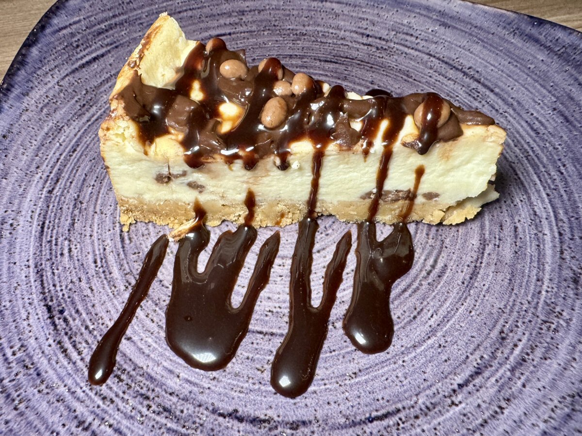 His Nibs had got a hefty wedge of Vanilla-based Cheesecake to scoff, and it was zhuzhed with Honeycomb’s subtly floral sweetness in this particular offering. The biscuit base was perfect: firm enough to not disintegrate, but soft enough to cut into with a dessert spoon. Plentiful, thick ribbons of Chocolate Sauce added a wallop of depth, and indulgence, to this sweet treat, with crunch provided by the dinky, decorative Honeycomb balls that adorned the surface of the rich Cheesecake ‘body’. Another super end to a great meal.