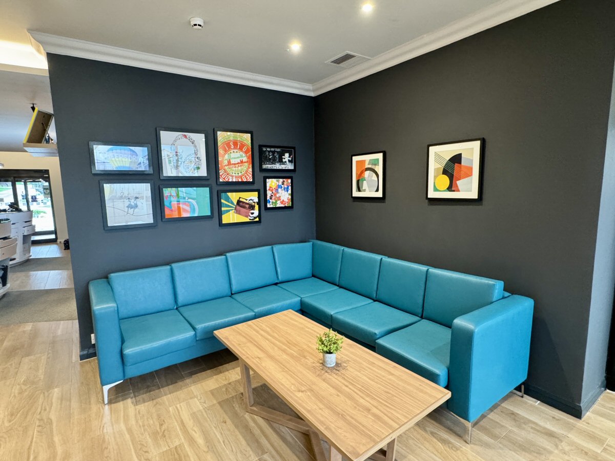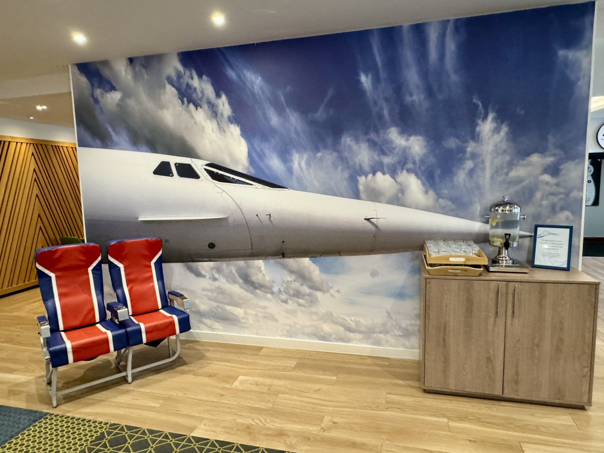 Speaking of the ‘open lobby’, I think this is a fantastic design; from the reception, bar, lounge and restaurant, everything flows seamlessly, and there are lots of corners tucked away in which to work, or enjoy a private conversation. I couldn’t resist taking a perch in one of the seats from Concorde (built and test-flight-flown in Filton itself, no less!) that were underneath a spectacular mural of the iconic aircraft.