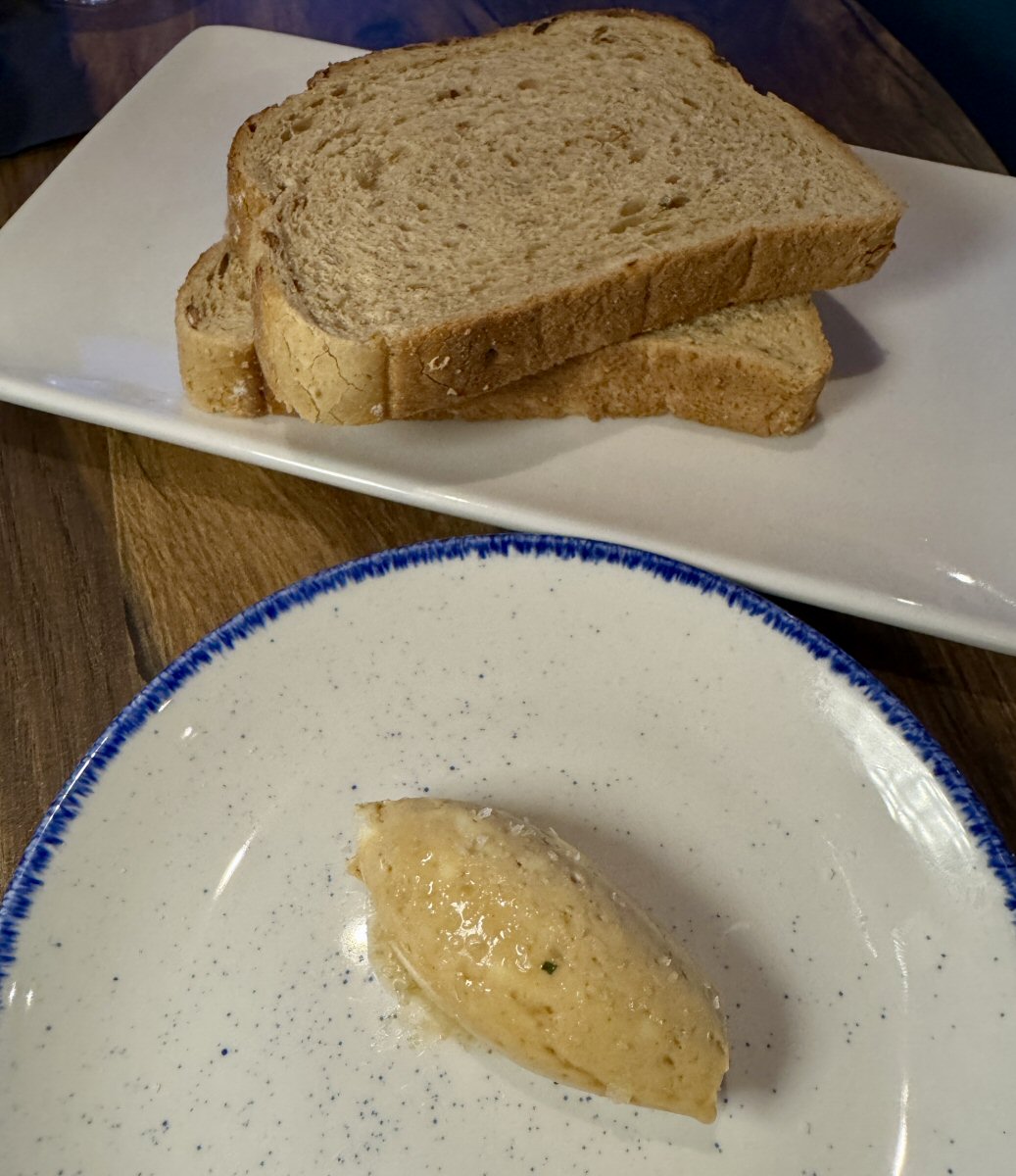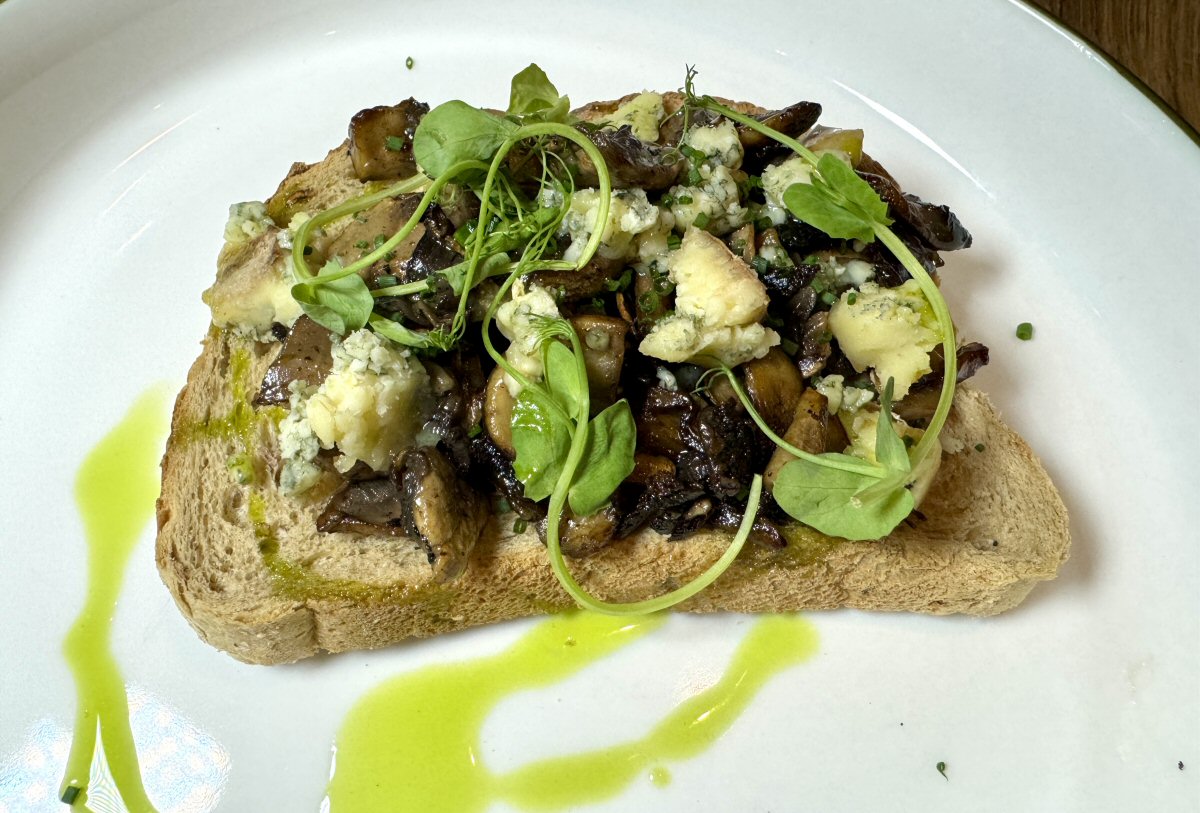 Anyhow, back to Stalk and Stem, where His Nibs and I were settled in with our drinks and some homemade Malted Sourdough and whipped Hendo’s-zhuzhed Butter – nom nom! The bread had a delightfully dense springiness to it, and Hendo’s (Henderson’s Relish) distinct tang walloped our palates with its characteristic enthusiasm.