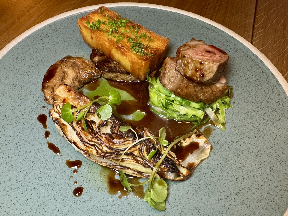 Bringing me back to the purpose for our visit, one of the serving team placed our starter carefully before us and, having checked that we had everything we needed, left us to tuck in. His Nibs’ Cod Cheeks were served in a bowl with the most marvellously aromatic broth; before he even sampled the first bit, the steam was carrying the fragrant Lemongrass and Kaffir Lime to his nostrils! Clean and light on the palate, the broth certainly packed a flavour punch, and it was so good that, at the end of his meal, The Man asked for some [Wye Bakehouse] bread to mop it all up. When something is so good, trust me, you don’t want any of it to go to waste.