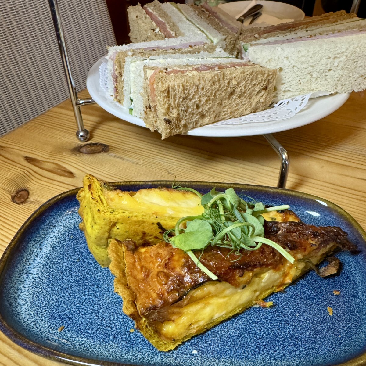 At this point, our Afternoon Tea came out, along with a platter of warm Quiche slices, so we tucked in. The pastry outer was nice enough in its own right, but the bounciness of the soft-set egg mixture was amazing! A generous filling of Bacon and Cheese was certainly very tasty on the palate, and the warmth of the Quiche ramped up its comfort factor sizeably. Both of us commented that it was really nice to have a warm element to the Afternoon Tea selection; you can’t beat a bit of sensory stimulation, can you?