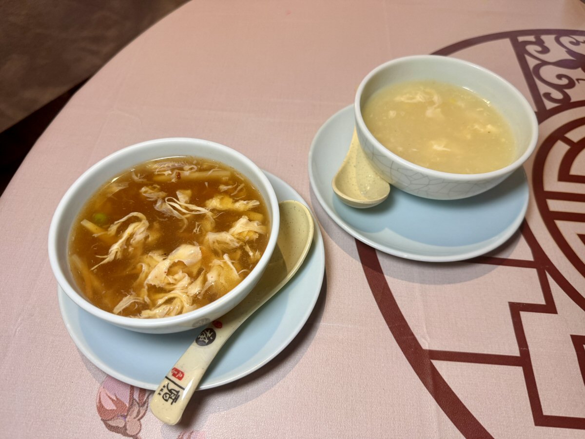 Clearing away our platter, we were asked if we’d like to order more starters, and chose to have a soup course: classic Chicken and Sweetcorn for me, Hot Sour Soup for The Man. The pretty soup bowls were full to the brim and we used those wonderful, flat spoons to scoop up the tasty liquid – be warned, the soups are piping hot, so don’t scald your tongues like I did. Yes, I know there’s always one…and it’s usually me! My soup was lovely and silky in texture with plenty of Sweetcorn and Chicken Breast pieces in it, and I savoured every mouthful. The Man Birds’ Hot Sour Soup was fabulously sharp and tangy, with ribbons of egg white adding ‘body’ to the thin broth; lots of vegetables were within the soup, too, making this very satisfying.