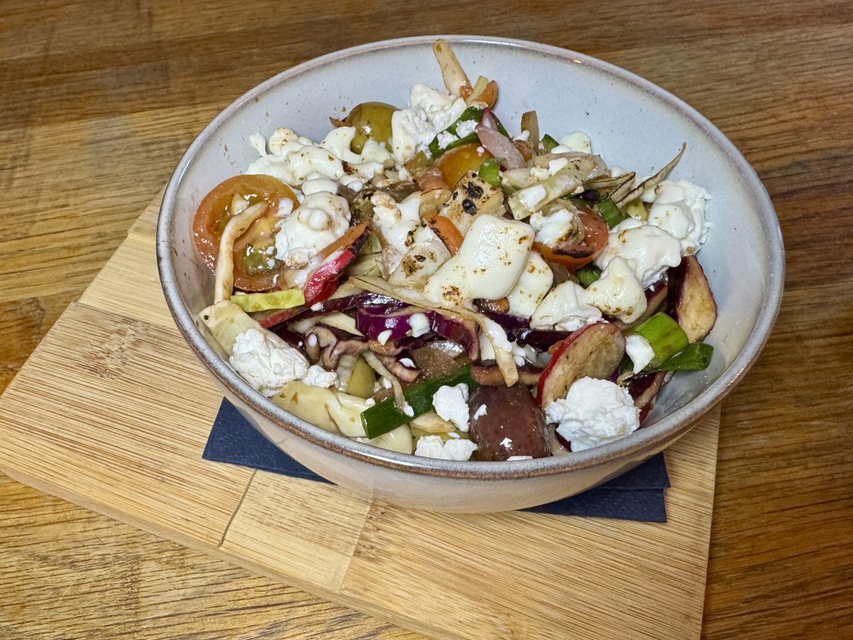 It wasn’t long before one of the team was presenting us with our starters and we dug in enthusiastically. I was happy to discover a multitude of Green Olives amongst the julienned Cucumber and halves of sweet Cherry Tomatoes, and my palate certainly appreciated the gentle (though unmistakeable) ping of heat from Chilli in there, too. I’m not sure how authentic it is to have Radish in a traditional Greek Salad, and I’m not sure whether I’m ‘all in’ about its inclusion in modern versions. Undoubtedly, it adds crunch but then fresh salad veggies are already crunchy, no? Whatever, its peppery character was complemented by creamy-yet-tangy Feta Cheese, whose salty tang balanced the Tomato nicely.