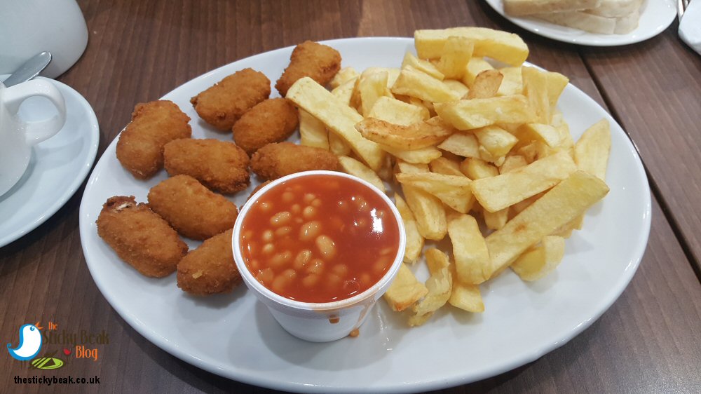 I had the 10-12oz Haddock that comes with a choice of Peas, Beans, Curry, or Gravy (I had mushy peas) a slice of bread and butter, and a choice of hot or cold drink (I had a cup of tea) - this cost £8.50. The Boy Wonder had 10 pieces of Scampi, although he had beans with his; like me he had a cup of tea with his meal which cost £7.20.
