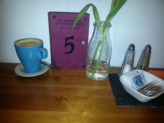 I ordered a double shot latte and his-nibs had a regular latte while we decided what to have. In the end the Man had his usual full English Brekkie and I had Scrambled Egg and Salmon on a toasted Butter muffin. The Full Breakfast had sausage from Owen Taylors in Leabrooks, good thick back Bacon, a Fried Egg, Derbyshire Oatcake, Mushrooms, Tomato and Toast and a Homemade Potato Rosti. There were many appreciative chirrups of delight from the Man who declared it to be delicious and filling, and I have to say that I was equally thrilled with my choice. The Muffin was gloriously buttery in taste which lent itself very well to the scrambled egg atop it, and the Salmon which crowned it all was proper slices rather than mere flakes. Both choices were very filling, which is just how breakfast should be - after all it kick-starts the day doesn’t it and gives our brains and bodies fuel to carry out what we demand of them.